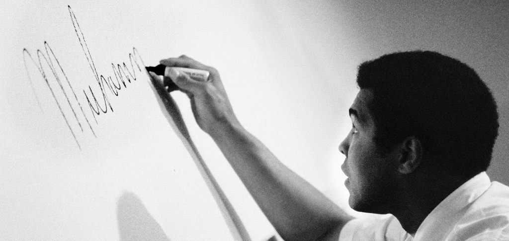 Muhammad Alí, firmando en la pared del Gran Casino Mallorca, junio 1979. ©Pedro Coll
